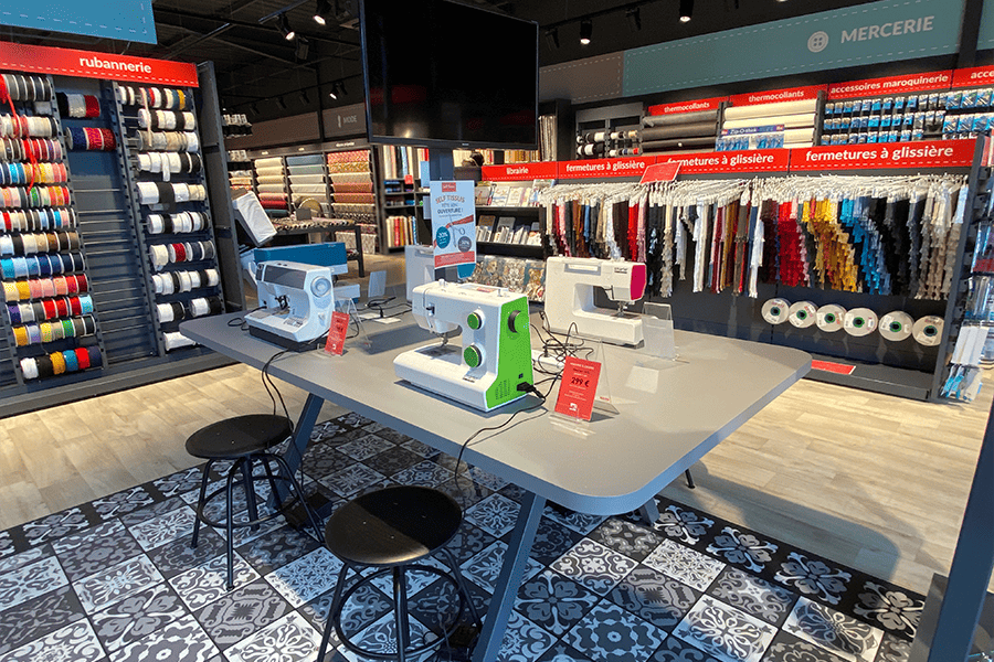 EFI Concept vous accompagne dans l’agencement de votre espace atelier, un lieu dédié aux activités manuelles, conçu pour offrir à vos clients une expérience d’achat unique. Dans cet espace pensé pour l’inspiration et la confection sur mesure, vos clients peuvent réaliser leur projet sur place, en ayant à proximité les tissus et fournitures nécessaires à leur création, tout en bénéficiant de vos conseils personnalisés, créant un lien précieux qui fidélise et distingue votre magasin.